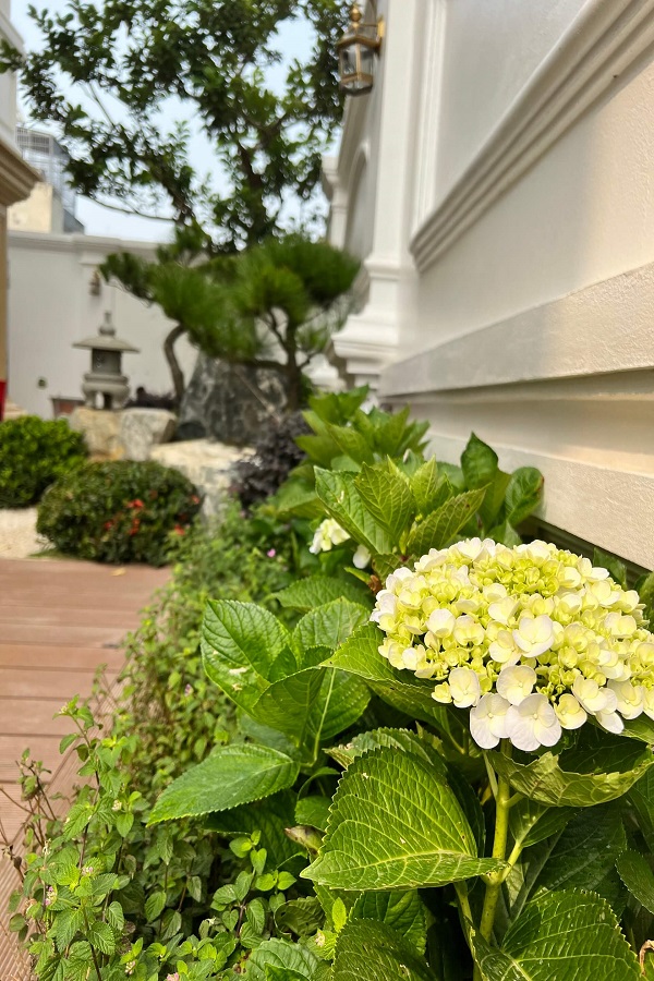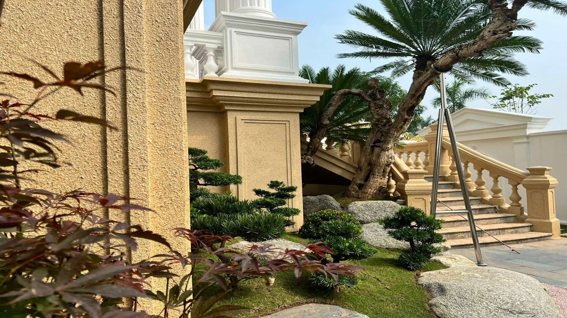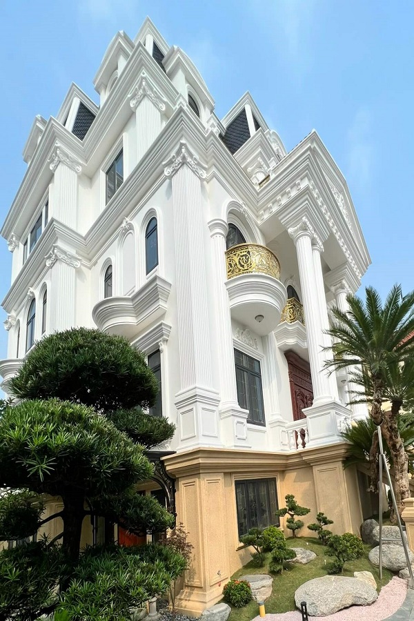 Cảm nhận vẻ đẹp và chất lượng hoàn hào của tường, phào chỉ, cột, khối đế. Ngoại thất được phủ hoàn thiện với vật liệu Sơn đá hoa cương.